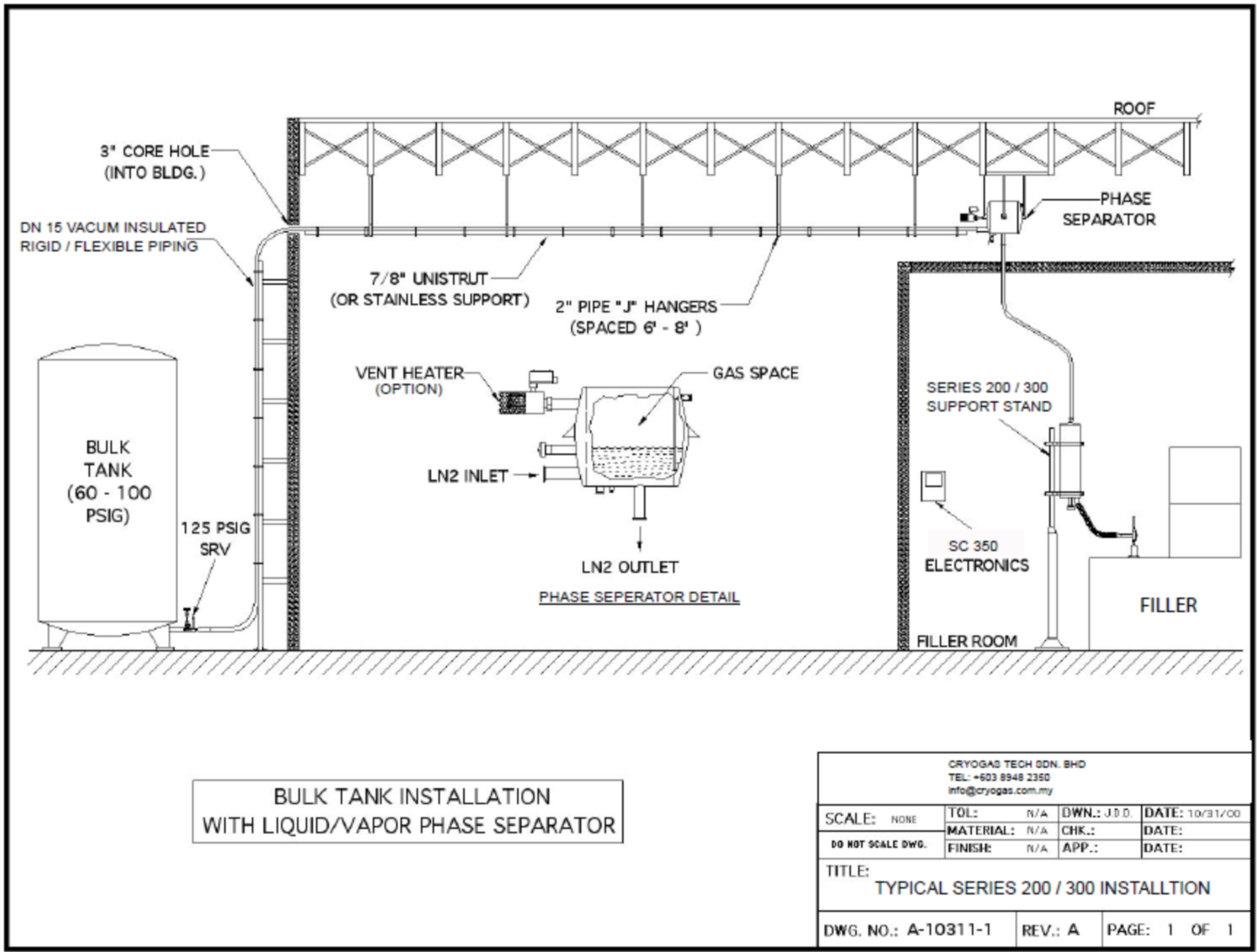 大儲罐液氮供應系統(tǒng),管道系統(tǒng)裝置,需加氣相分離器。